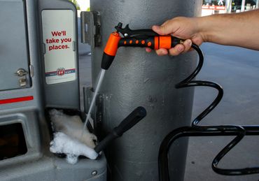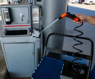 *High pressure pump making washing down non-petro spills and messes simple and quick.